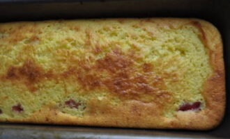 - Vorm een cake tot we geen ingrediënten meer hebben. We bakken het dessert 35 minuten op een temperatuur van 180 graden.