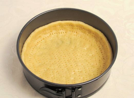 - Kneed de resulterende klont en leg deze in een ovenschaal. We doorboren de basis met een vork. We bakken 15 minuten op 180 graden.