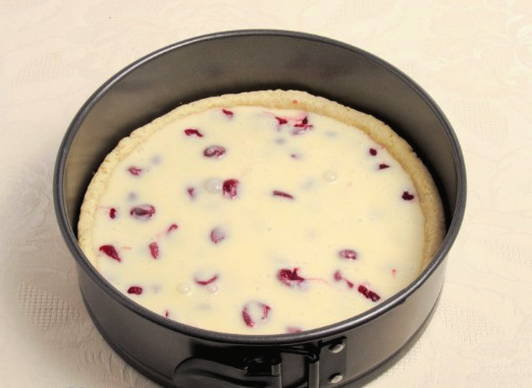 Giet het product in een met boter beklede vorm. Aanvulling met voorgewassen en ontpitte bessen.