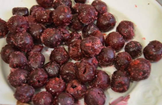 - We meten de benodigde hoeveelheid bevroren bessen af.