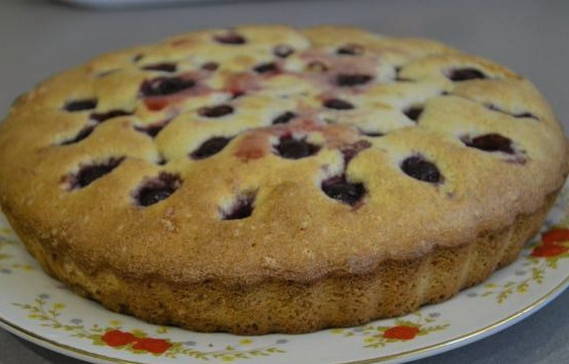 Weelderige kersentaart op kefir in de oven