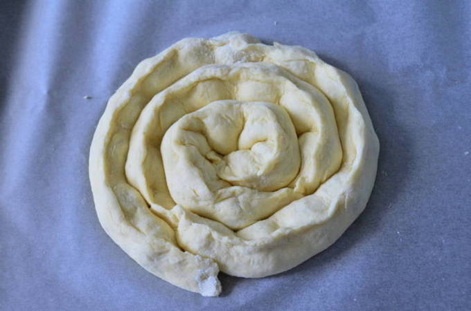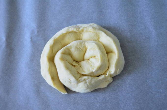 - We draaien de buis met de vulling tot een slak.