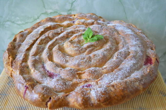 Heerlijke taart "Slak" op kefir met kersen