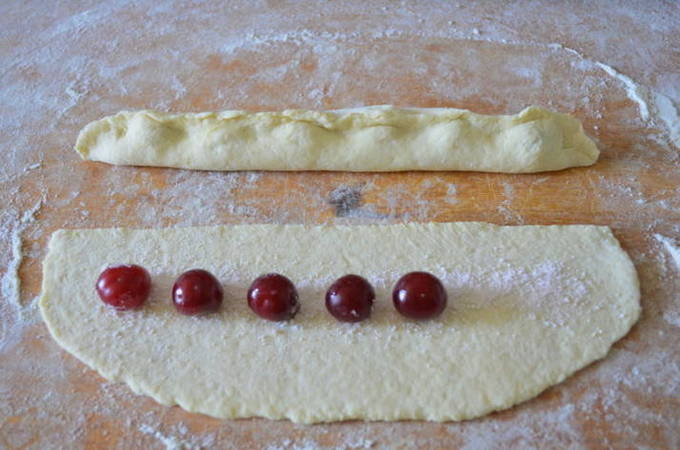 - Leg op een laag deeg de eerder gewassen en ontpitte bessen.
