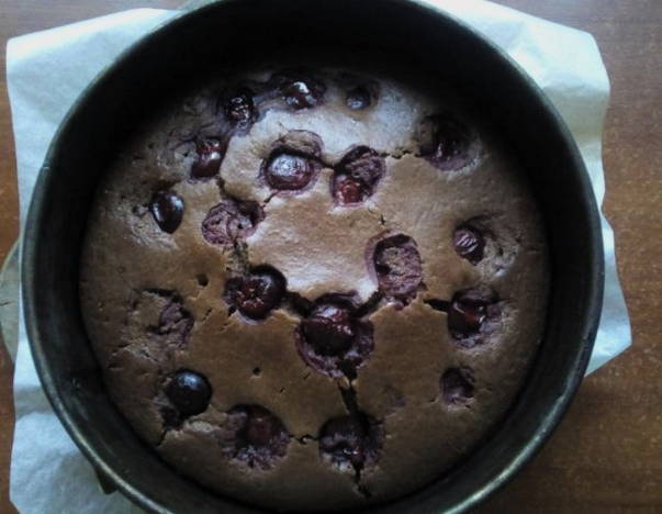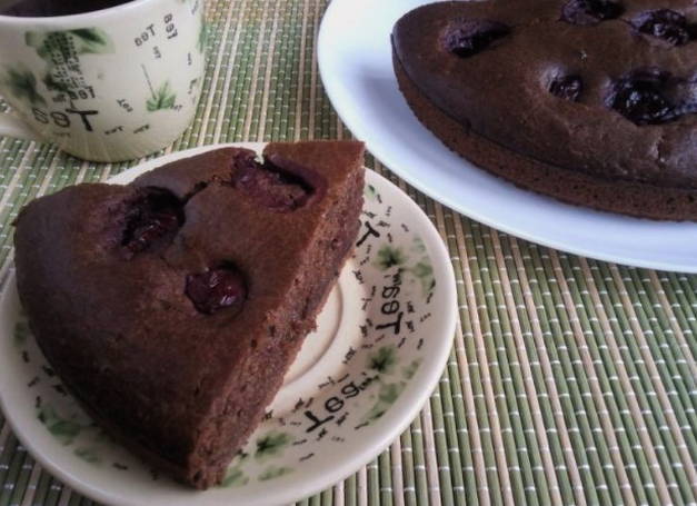 Chocoladetaart op kefir met kersen in de oven