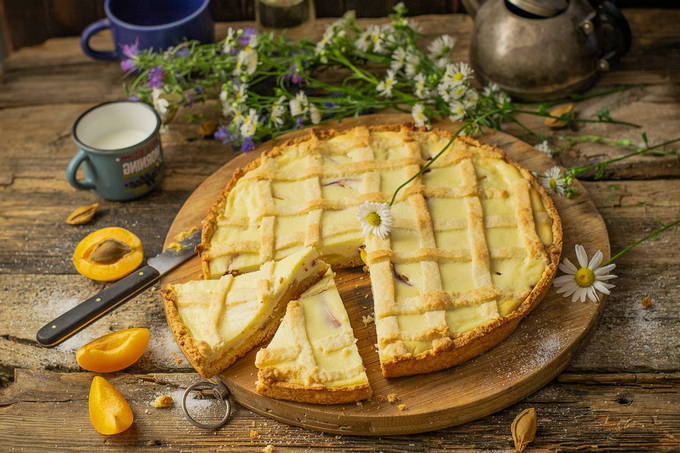 Het idee voor aromatisch en delicaat bakken thuis is een taart met wrongelvulling en abrikozen. Bekijk een eenvoudig recept voor een kleurrijke traktatie. Serveer voor een theekransje of een feestelijke tafel!
