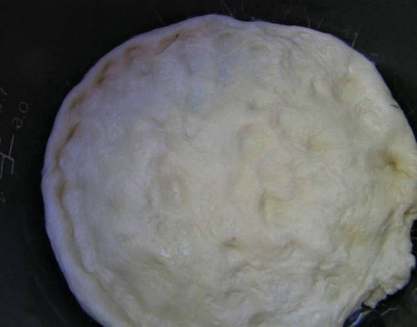 - Scheid een klein stukje van het deeg dat omhoog is gekomen. Kneed het resterende product met je handen en doe het in een ingevette vorm.