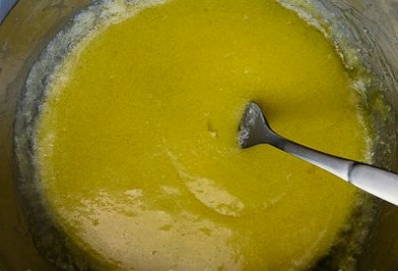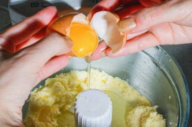 - Combineer zachte boter, eieren en suiker. Roer het mengsel in een blender tot een glad mengsel.