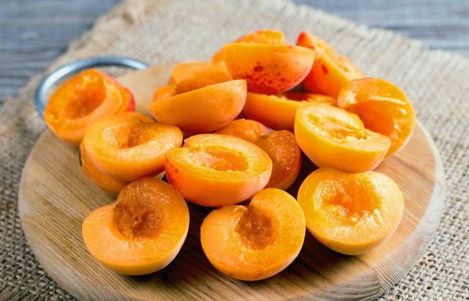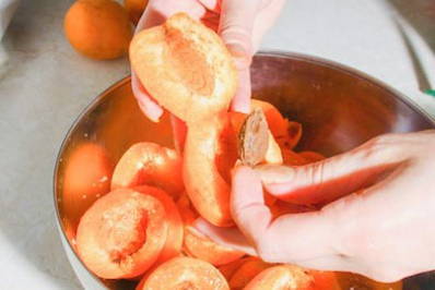 - We wassen de abrikozen en verdelen ze in twee helften, waarbij we voorzichtig de zaden verwijderen.
