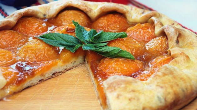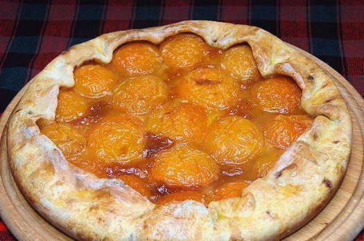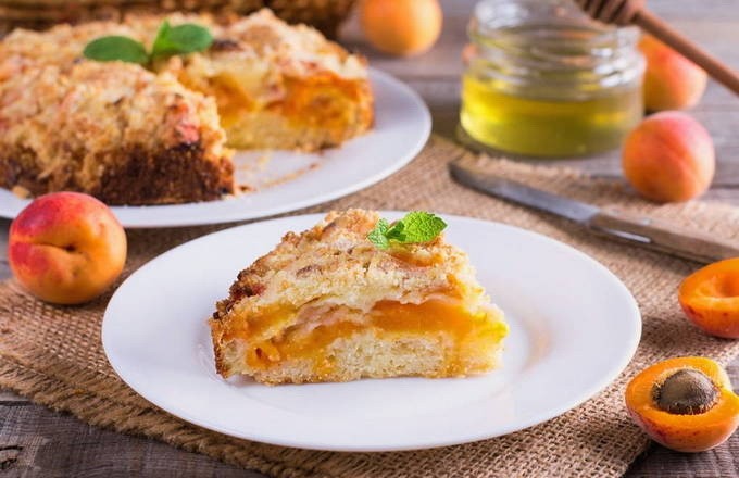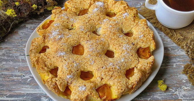 Blozend en helder van smaak, de taart is gemaakt van sappige abrikozen. Het dessert is matig zoet en ongelooflijk aromatisch. Serveer een originele traktatie bij thee of andere drankjes.