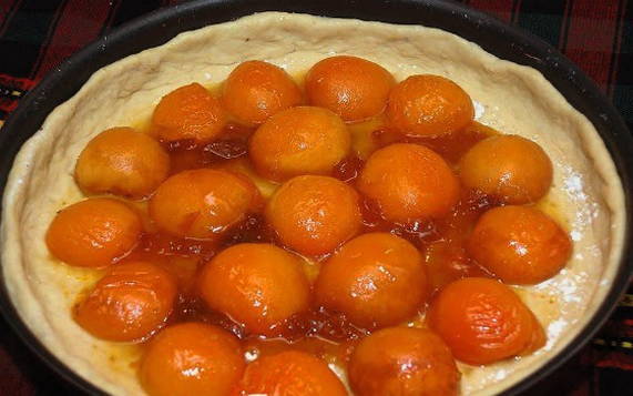 - Weelderige en luchtige gistdeegtaart met abrikozen