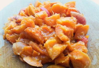 - We wassen de abrikozen en snijden ze in kleine partjes. We verwijderen de botten.