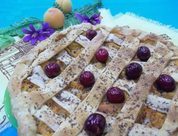 Blozend en helder van smaak, de taart is gemaakt van sappige abrikozen. Het dessert is matig zoet en ongelooflijk aromatisch. Serveer een originele traktatie bij thee of andere drankjes.