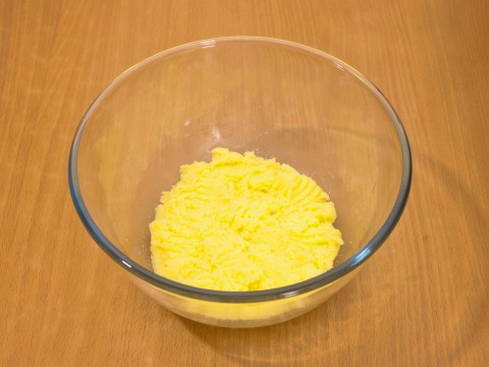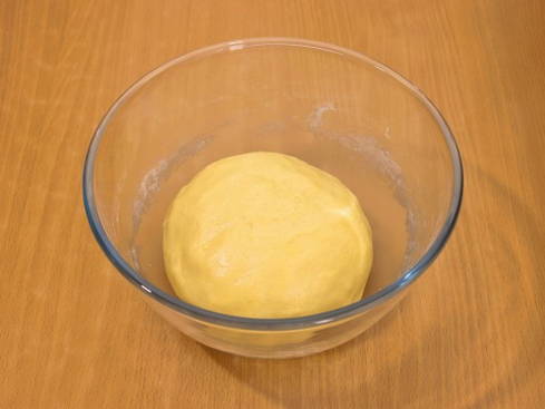 - Voeg aan het einde van het kneden gesmolten en afgekoelde boter toe, kneed het deeg met je handen. Het resultaat moet een zacht en niet plakkerig deeg zijn.