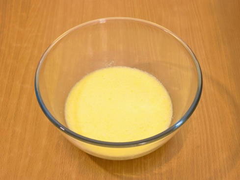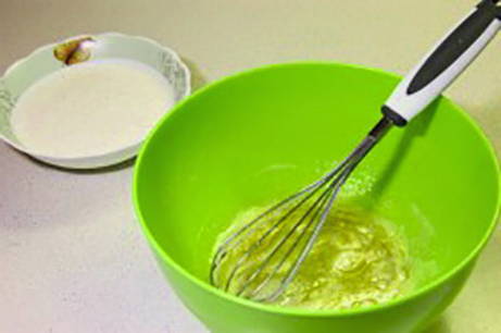 - Klop 2 eieren, 60 gram suiker en een eetlepel griesmeel in een kom.