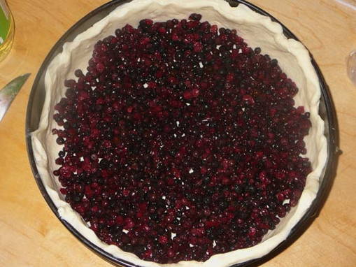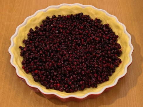 - Sorteer de bosbessen en was ze goed. Gooi de bessen in een vergiet zodat het glasvocht en de bessen uitdrogen. Leg vervolgens de bessen op het deeg. Zet de schaal 30-40 minuten in de oven, voorverwarmd op 180 graden.