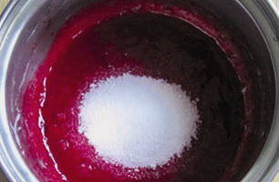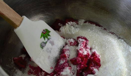 - Ontdooi de vossenbessen volledig, meng ze met suiker en zetmeel. Plaats de bessenmassa op het vuur en kook 7-10 minuten. Koel de afgewerkte vulling.