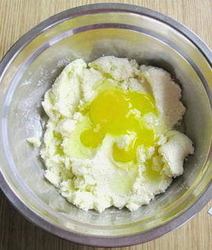 - Roer apart, in een kom, het ei, het zout en de suiker door elkaar. Voeg vervolgens de gistmassa toe aan het losgeklopte ei en meng goed.