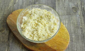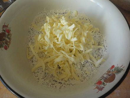- Meng bloem, suiker en maanzaad apart, rasp bevroren boter. Wrijf de ingrediënten met je handen tot kruimels en leg ze in de koelkast.