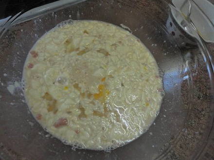 - Voeg het ei toe aan de kom, meng de ingrediënten.