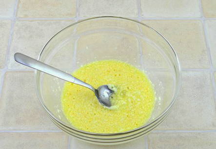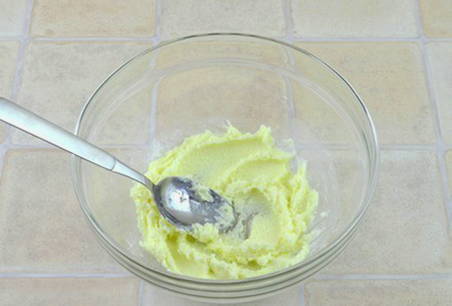 - Smelt margarine op laag vuur, laat iets afkoelen, voeg 1 ei en 2 eetlepels zure room toe.