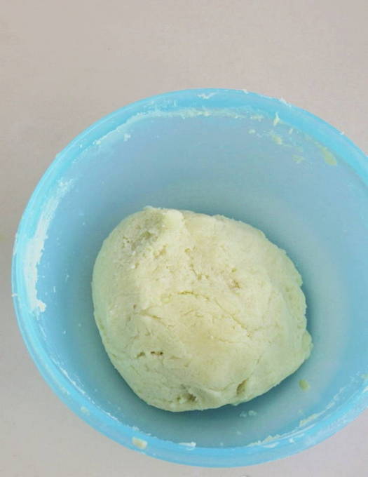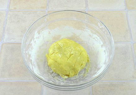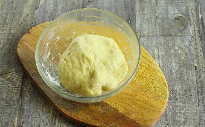 - Kneed een homogeen deeg, wikkel het in plasticfolie en zet het een half uur in de koelkast.