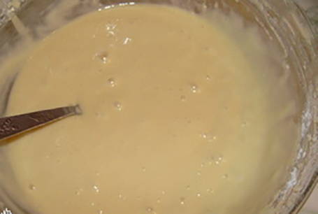 - De consistentie van het taartdeeg zal lijken op zeer dikke zure room.