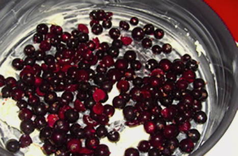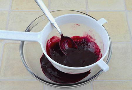- Maal de krenten in een blender, voeg 100 milliliter kokend water toe en mix tot een gladde massa. Veeg vervolgens de bessenmassa door een zeef.