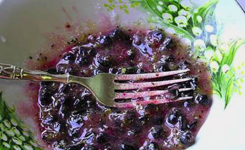 - Prak de helft van de bessen met een vork en meng de resulterende massa met de suiker-zetmeelmassa.