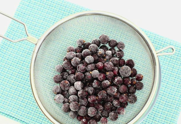 - Doe de bevroren zwarte bessen in een zeef en ontdooi ze.