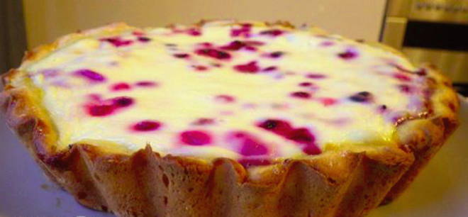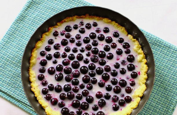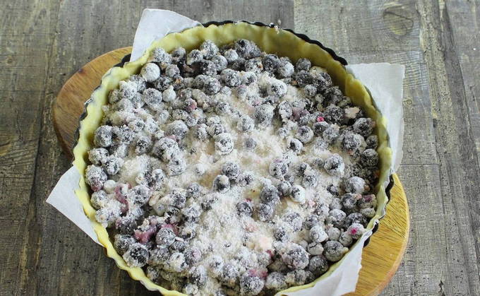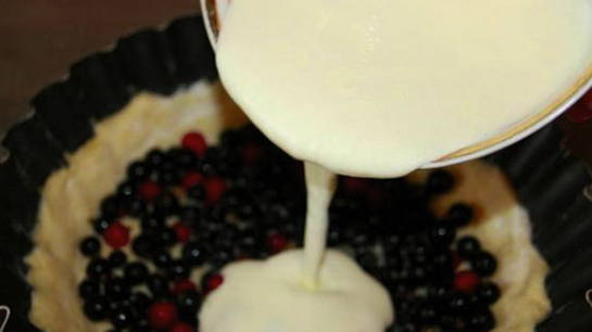 - Haal de deegpan uit de koelkast. Leg de bessen neer en giet de vulling erin. Bak de taart 30 minuten in een voorverwarmde oven op 200 graden.
