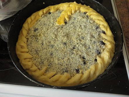 - Leg de vulling op het deeg, leg de rest van de bessen erop.