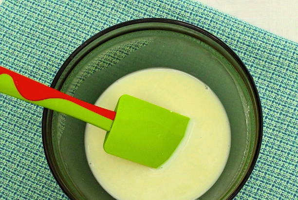 - Bereid de vulling voor. Combineer gecondenseerde melk, zetmeel en gewone melk.