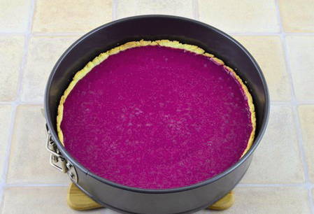 - Leg de zwarte bessenvulling op de bodem en bak de taart nog 30 minuten.