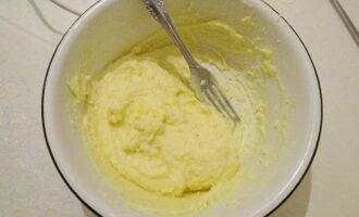 - Drijf de eieren in een geschikte bak en bedek ze met suiker, klop tot een gladde massa. Om dit te doen, kunt u een mixer, garde of vork gebruiken.