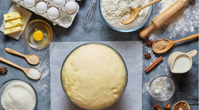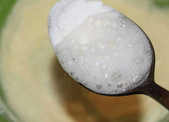 - Meng baking soda met bloem en voeg porties toe aan het deeg.