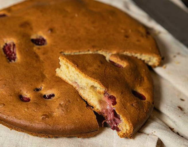- Serveer de afgewerkte cake in porties met melk of fruitthee.