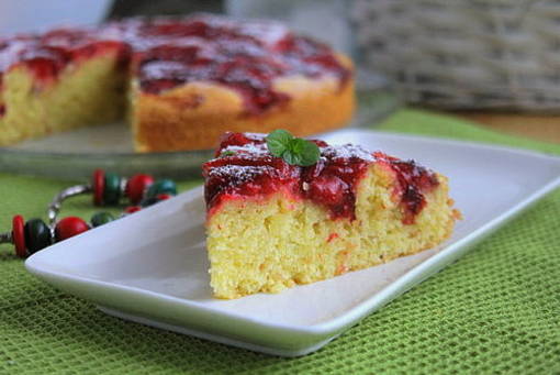 - Bak koekjesdeeg met aardbeien op 180 graden voor ongeveer 40 minuten. Koel de cake voor het serveren af, bestrooi met poedersuiker naar smaak en serveer in porties met thee of koffie. Eet smakelijk!