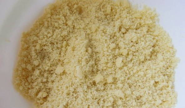 - Zeef bloem in een geschikte bak, voeg bakpoeder en boter toe en snijd in stukjes. Maal alles samen met suiker tot kruimels.