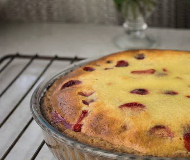 Een makkelijk en snel recept voor bakken met verse aardbeien, vergelijkbaar met appel charlotte. Het deeg is licht en luchtig en de bessen voegen sappigheid en zuurheid toe.