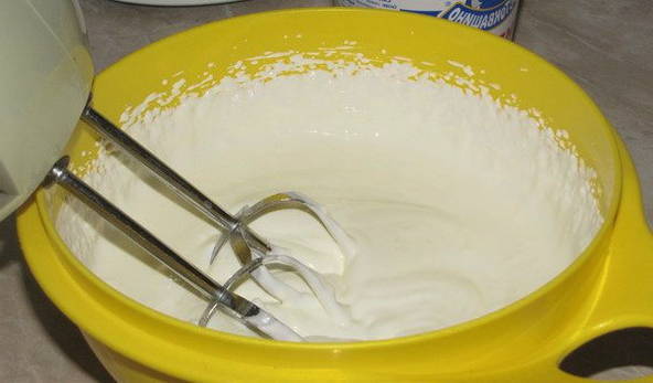- Klop het eiwit tot een stabiel schuim en meng voorzichtig met de dooiers.