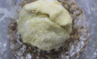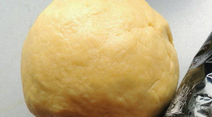 - Voeg 1 ei toe en kneed tot een glad, uniform deeg. Wikkel het deeg in plasticfolie en leg het een half uur in de koelkast.