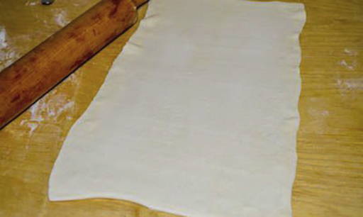 - Ontdooi het bladerdeeg volledig op kamertemperatuur.Rol het deeg uit tot een dunne rechthoekige laag.