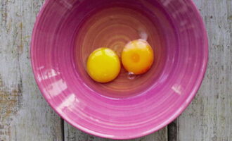 - Meng voor het schenken 2 kippeneieren, zure room, 100 gram suiker en 2 eetlepels bloem.