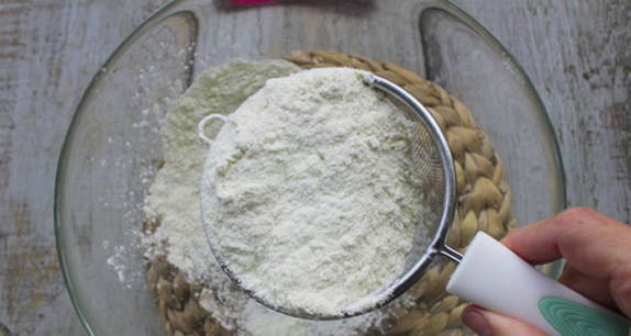 Zeef bloem in een kom, voeg suiker toe.