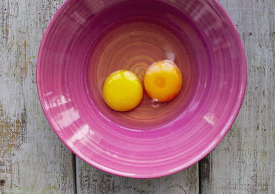 - Meng voor het schenken 2 kippeneieren, zure room, 100 gram suiker en 2 eetlepels bloem.