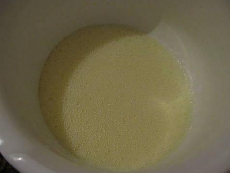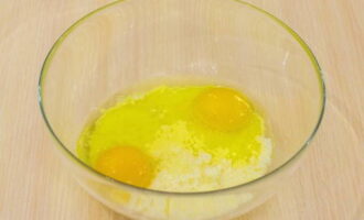- Klop eieren met suiker, voeg kefir, zonnebloemolie en bakpoeder toe, meng.
