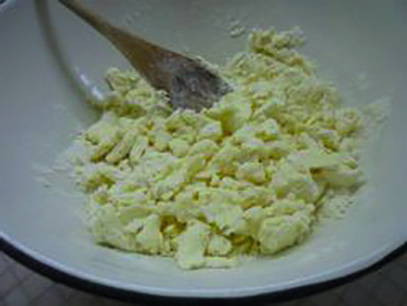 - Doe de resulterende kruimel in een kom en plaats in de koelkast.