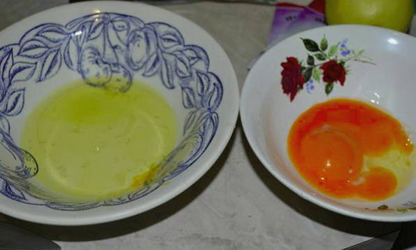 - Breek de eieren en scheid het eiwit van de dooiers.