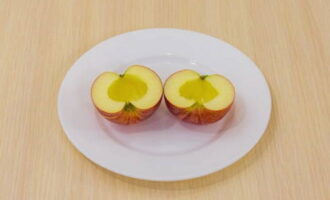 - Schil de appels, verwijder het klokhuis met zaadjes, snijd het vruchtvlees in dunne plakjes.